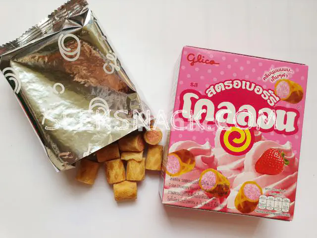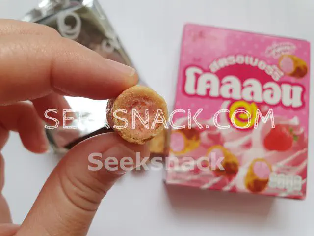 Biscuit Roll are little wafer roll tubes crunchy on the outside with soft creamy strawberry filling. The wafer was rather sweet, The textures are so satisfying