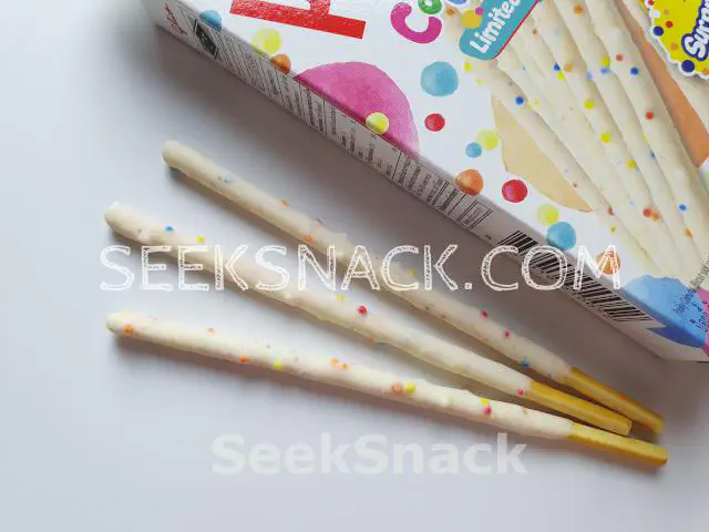 Pockey have Surprise is colourful Flavour (Limited Edition), Biscuit stick cream mixed with Sugar Flake. Biscuit stick have many colour from sugar flake around white cream. Taste so sweet and soft smell