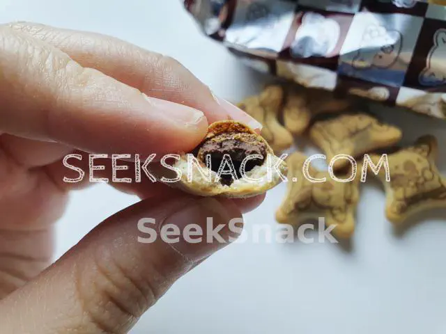 This cute bear pattern biscuits are so cute! There’s creamy’s chocolate filling on the inside. tastes while the biscuit is still crispy and yummy!