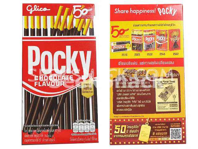 | ป๊อกกี้ รสช็อกโกแลต (Smell Package) | ป๊อกกี๊ รสสตรอเบอร์รี (Smell Package) | ป๊อกกี้ แฟมิลี่แพ็ค รสช็อกโกแลต |