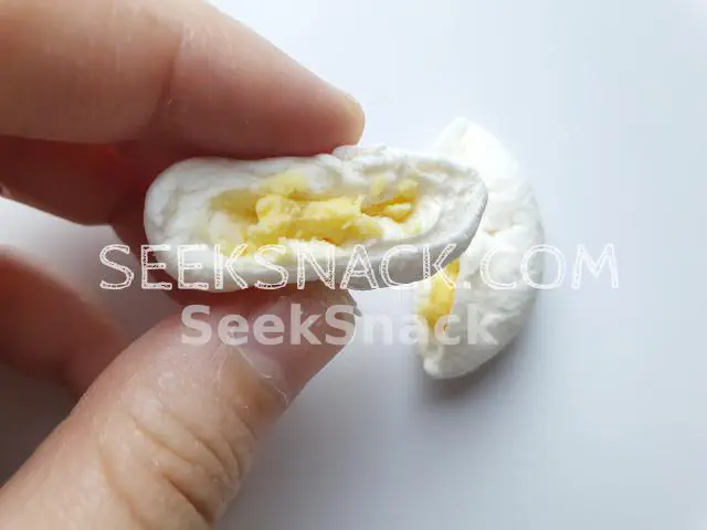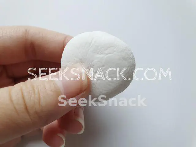 มาร์ซเมลโล่สีขาวทรงกลม มีความยึดหยุ่นและหนึบหนับ ไม่มีกลิ่นรสชาติหวานน้อย เมื่อกัดเข้าไปเจอครีมกล้วยและมีกลิ่นค่อนข้างชัดเจน ไม่ค่อยมีรสชาติของกล้วยแต่มีรสชาติค่อนข้างหวาน เมื่อกินด้วยกันระหว่างมาร์ซเมลโล่และครีมกล้วยแล้วโดยรวมรสชาตืถือว่าดีสำหรับคนที่ชอบกินกล้วย