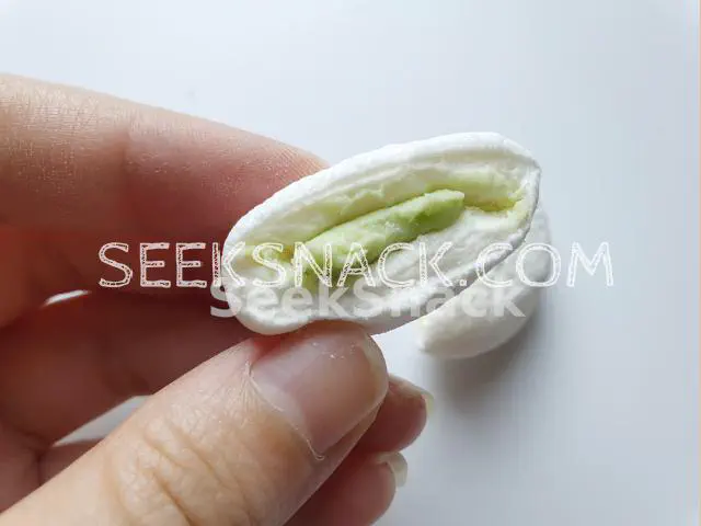 มาร์ซเมลโล่สีขาวทรงกลม มีความยึดหยุ่นและหนึบหนับ ไม่มีกลิ่นรสชาติหวานน้อย เมื่อกัดเข้าไปเจอครีมแคนตาลูปสีเขียวอ่อนและมีกลิ่นแคนตาลูปค่อนข้างชัดเจน ไม่ค่อยมีรสชาติของแคนตาลูปแต่มีรสชาติที่ค่อนข้างหวาน เมื่อกินด้วยกันระหว่างมาร์ซเมลโล่และครีมแคนตาลูปแล้วโดยรวมรสชาตืถือว่าดีสำหรับคนที่ชอบกินแคนตาลูป
