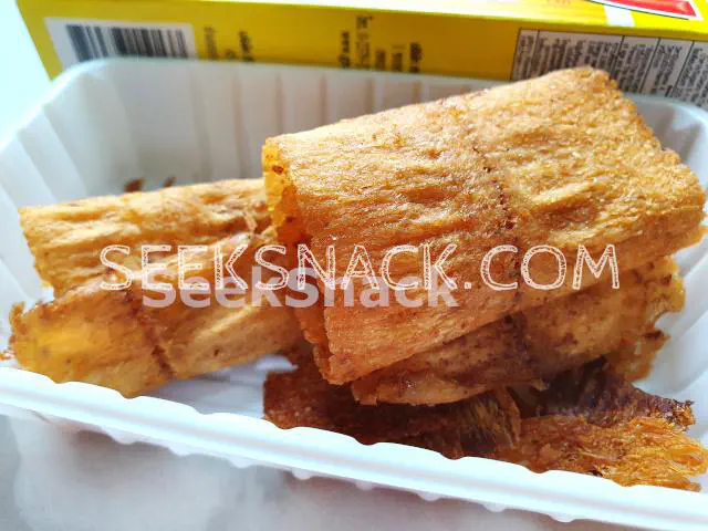 เมื่อแกะซองจะเห็นปลาหมึกอบกรอบผสมเครื่องปรุงเล็กน้อยรอบๆปลาหมึก กลิ่นของปลาหมึกปรุงรสค่อนข้างแรง สัมผัสถึงความกรอบเมื่อกัดเข้าไป รสชาติเผ็ดปนหวานเล็กน้อย